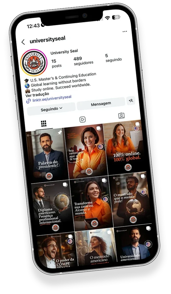 Imagine receber seu mestrado em uma universidade americana licenciada na Flórida, com formação 100% online, prática e orientada ao mercado global.
